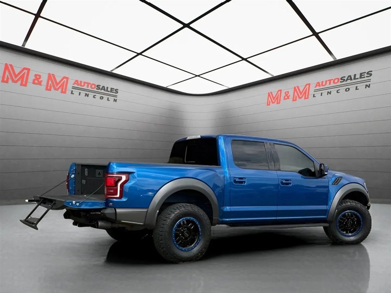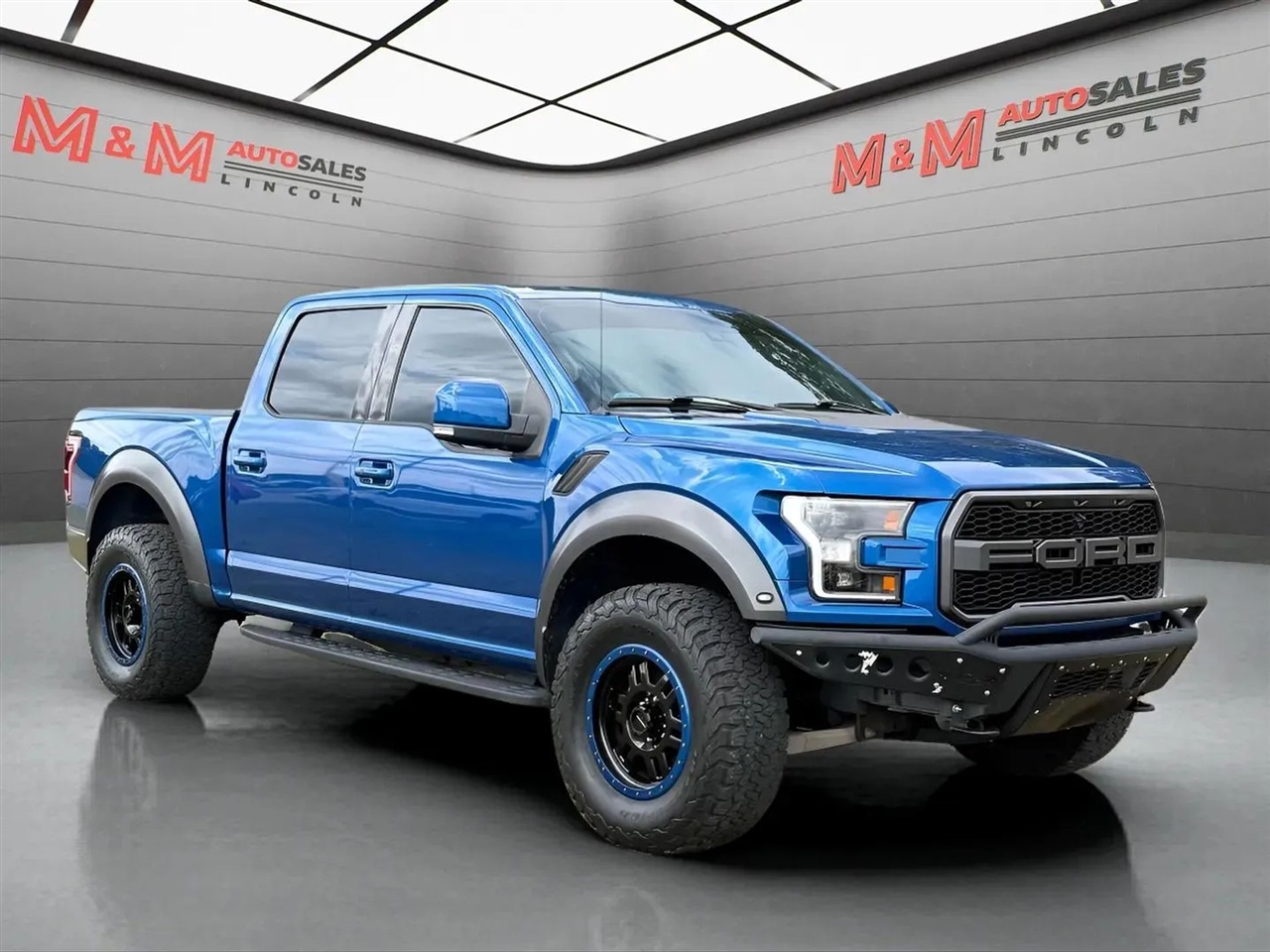 Presenting the 2018 Ford F150 SuperCrew Cab Raptor Pickup, an impressive vehicle that blends remarkable design with advanced engineering. Its striking blue exterior is perfectly matched by a sophisticated black interior, offering an environment that is both refined and comfortable. This pickup is designed to meet the needs of discerning drivers who value both style and performance in their daily drive.